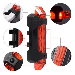 Esta lanterna traseira possui 5 leds de brilho intenso que auxiliam na sinalização enquanto você pedala.